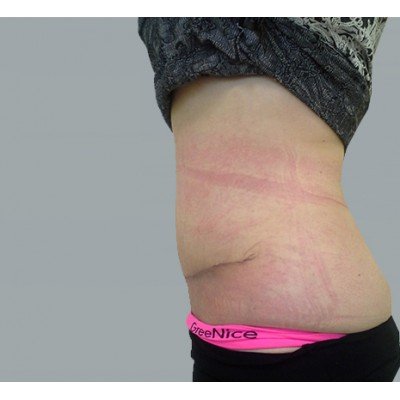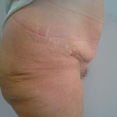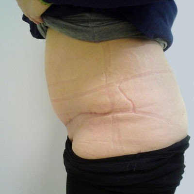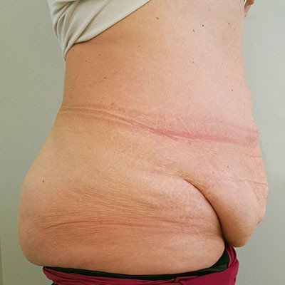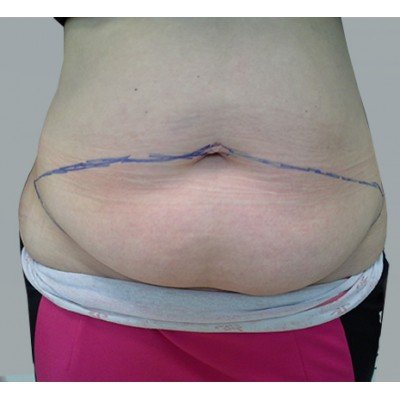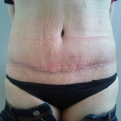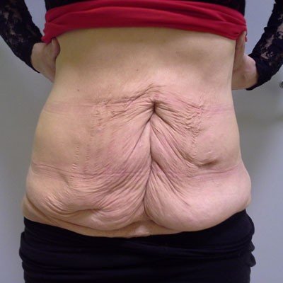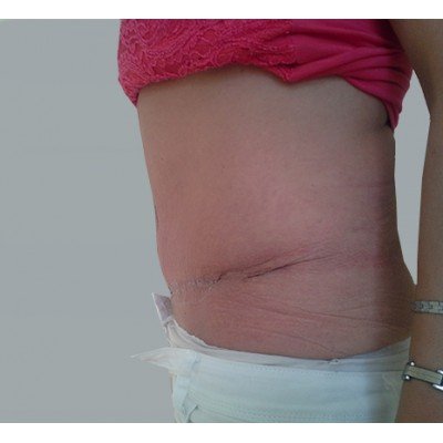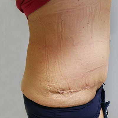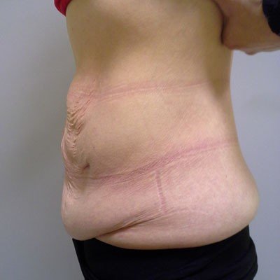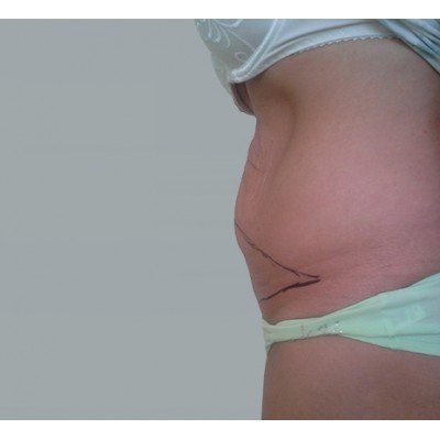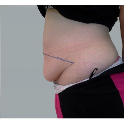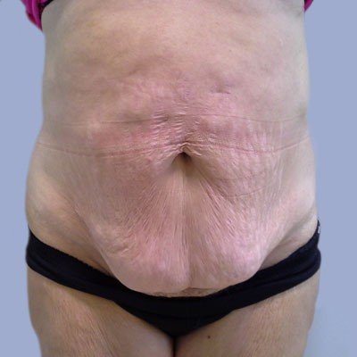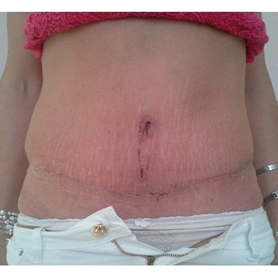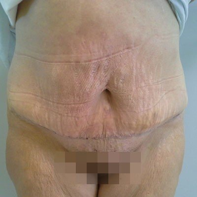Komplette Bauchdeckenstraffung (inkl. Muskelstraffung und Bauchnabelverlagerung) – der Bauchnabel wird von der umgebenden Haut getrennt, gedehnte Muskeln werden zusammengezogen und vernäht, überschüssiges Fett wird entfernt. Die Haut wird nach unten gezogen und der Überschuss entfernt. Der Bauchnabel wird neu positioniert, um der neuen Bauchform zu entsprechen.