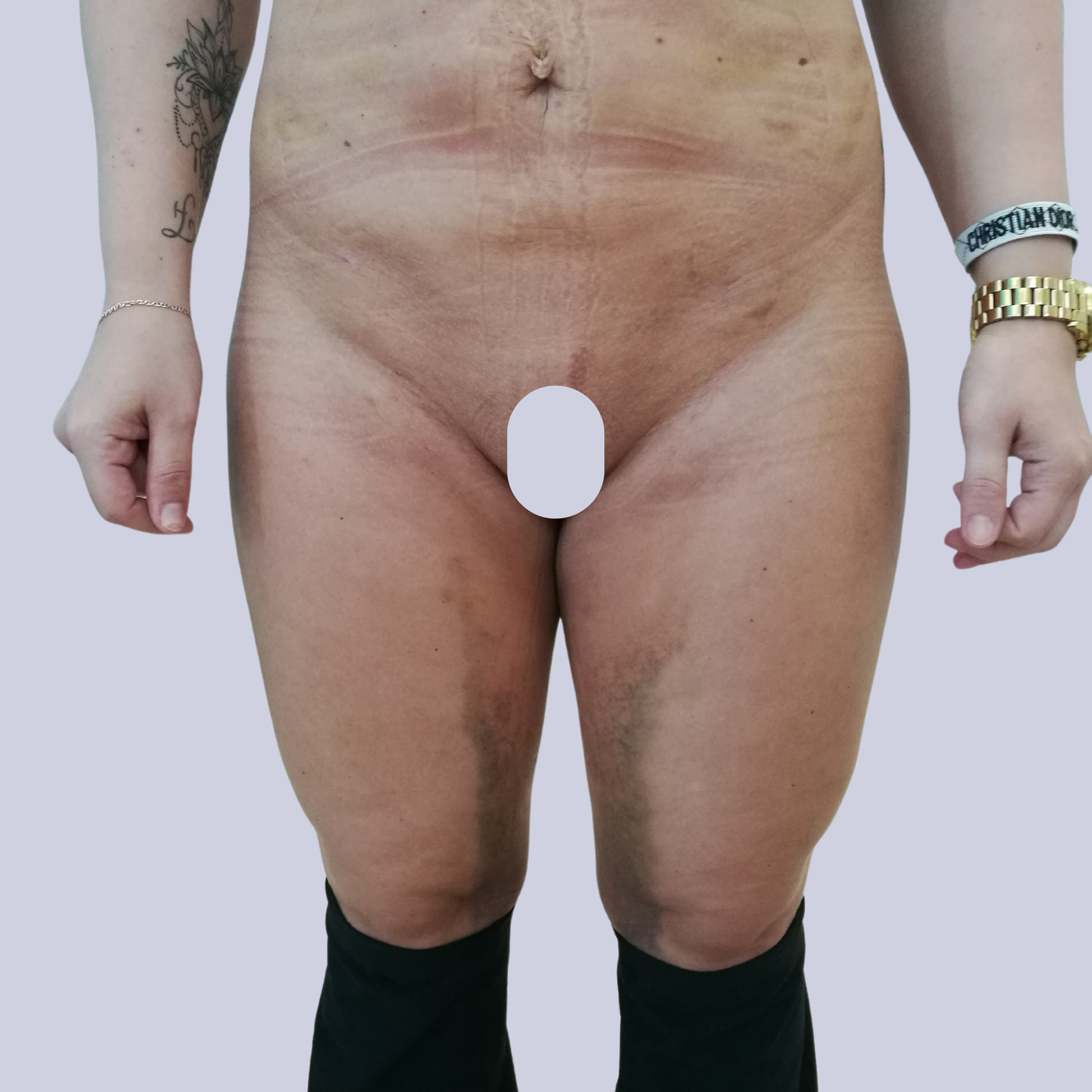 Liposuction is performed under general anaesthesia or under local anaesthesia, using a so-called tumescent liposuction technique. It takes approximately one hour.